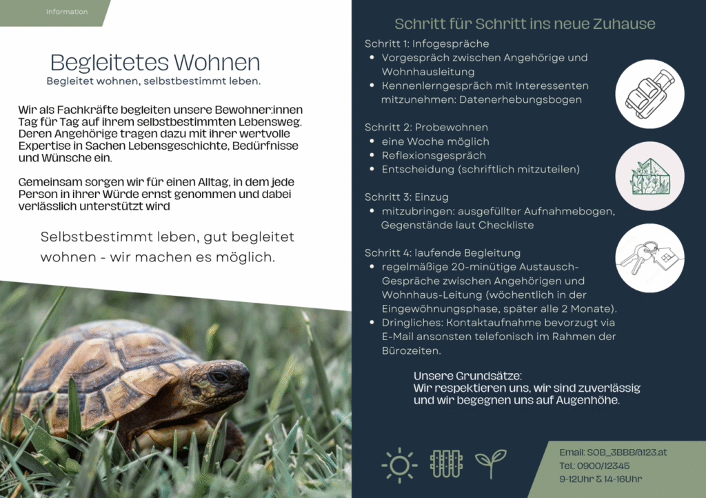 Im Unterrichtsfach „Einführung in die Angehörigenarbeit – soziales Umfeld“ haben die Ausbildungsteilnehmer:innen der 3BBB praxisnahe Broschüren zur Angehörigenarbeit entwickelt.